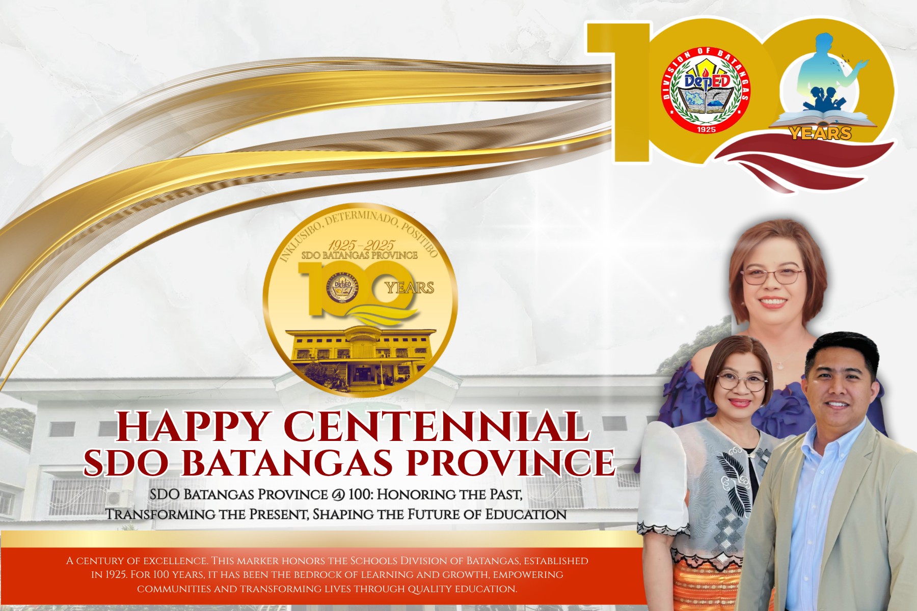 The Schools Division Office Batangas Province proudly celebrates its 100th Founding Anniversary! This monumental milestone marks a century of commitment to quality education and service to the Batangueño youth.
